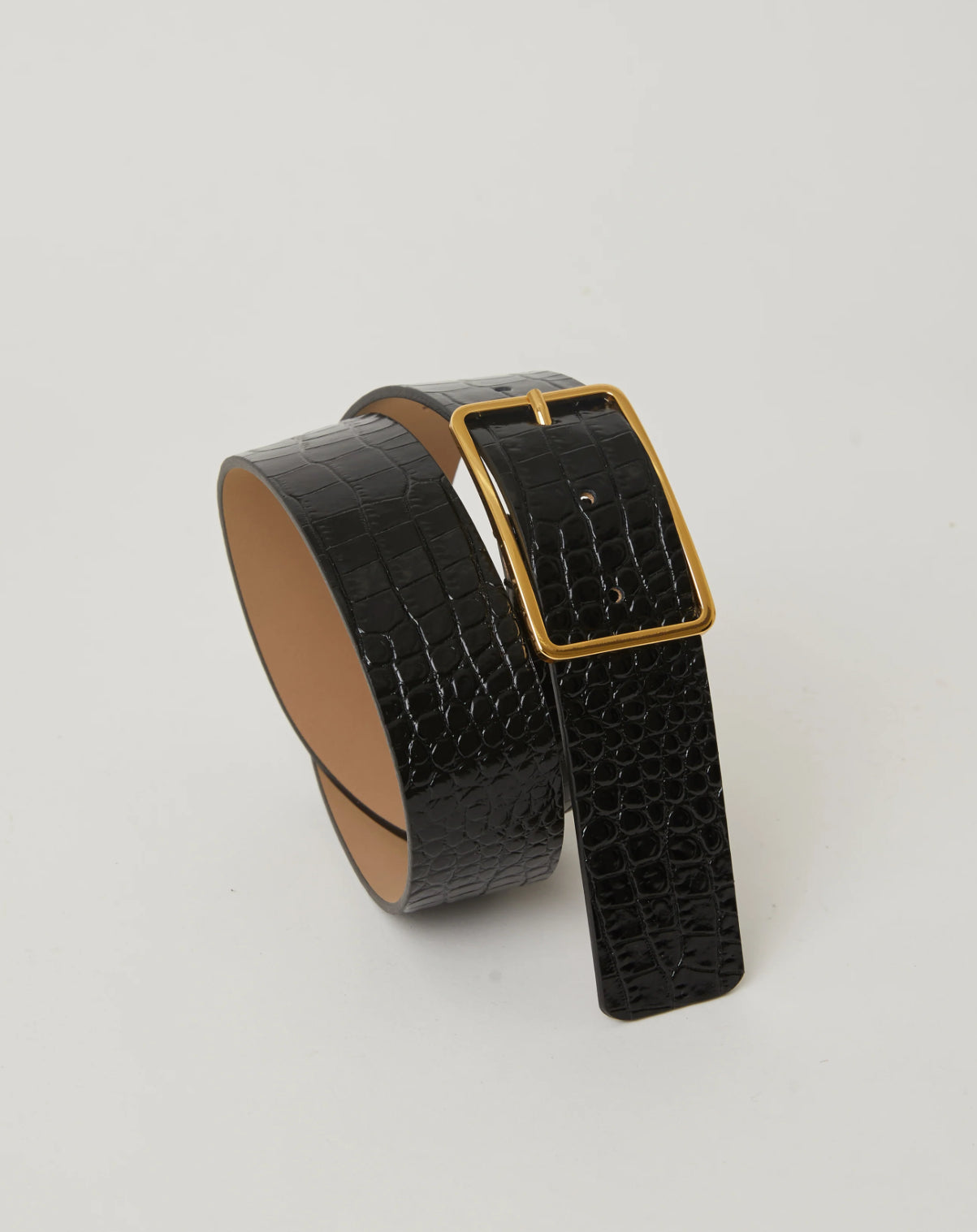 MILLA CROCO LEATHER BELT - Chocolate Brown