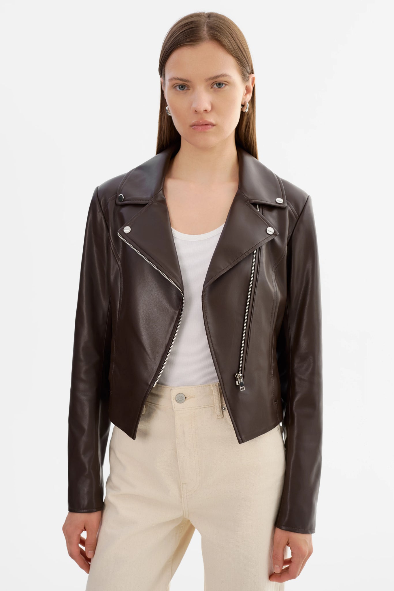 The PASCALE Fitted Leather Jacket is the perfect addition to the modern woman's wardrobe. It features a front diagonal zip, snap collar and lapel, and a minimalistic design. Flattering to the figure with its fitted cut, this jacket effortlessly blends style and minimalism, making it suitable for day-to-night wear.