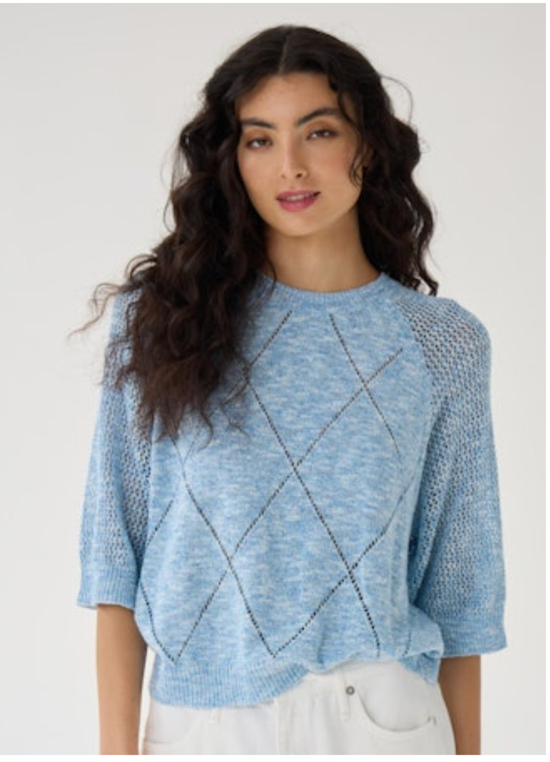 Pointelle Diamond Stitch Elbow Sleeve Tee