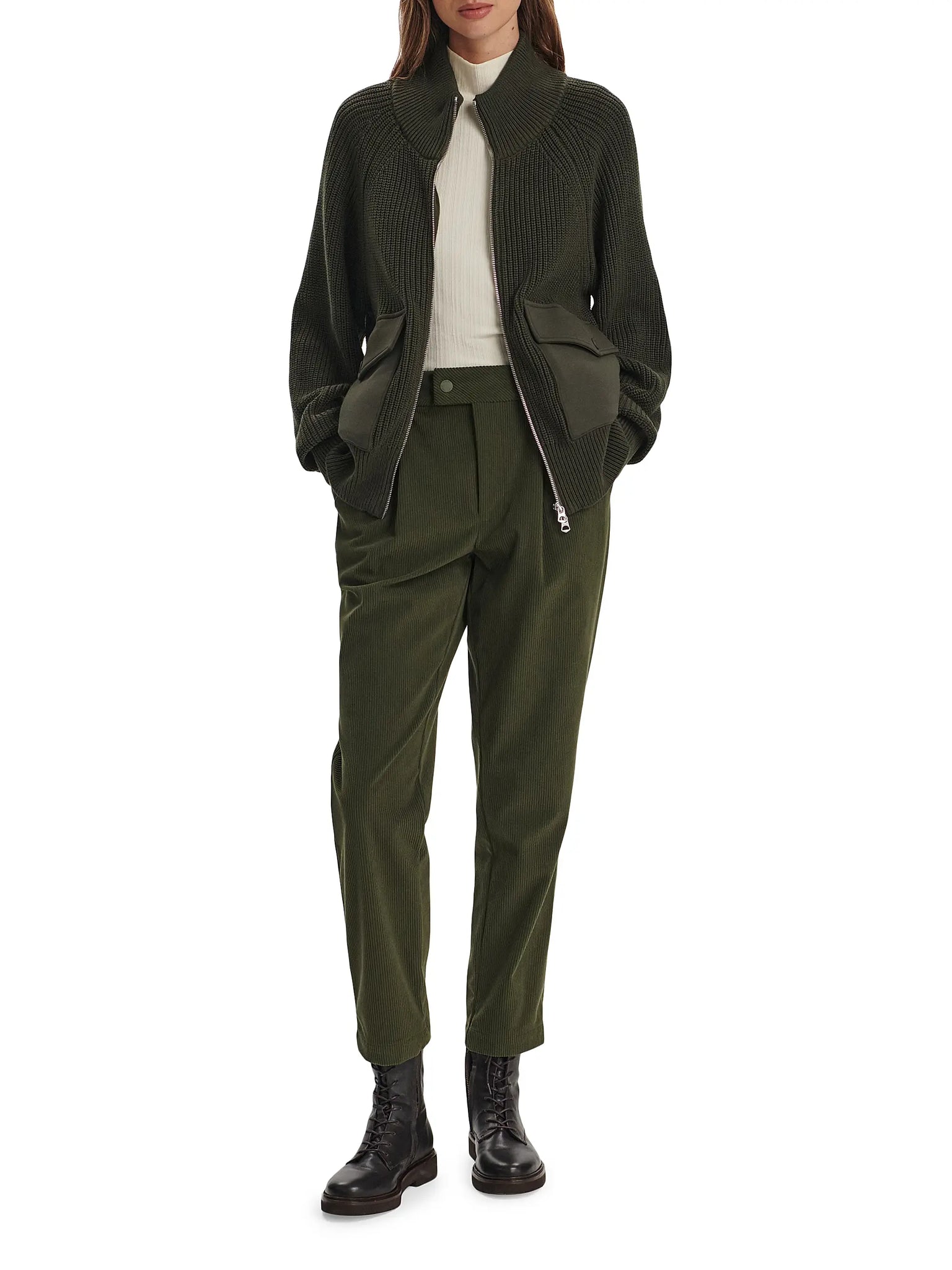 Varley's Tessa jacket is knit from cotton and styled with two-way closure and two side snap flap pockets.