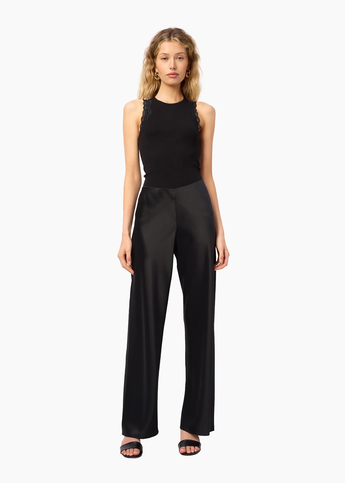 THE BRISTOL PANT — A BEAUTIFULLY TAILORED FOUNDATION PIECE DESIGNED FOR EFFORTLESS ELEGANCE AND EVERYDAY VERSATILITY. CRAFTED FROM MIDWEIGHT REFINED SATIN, THESE PANTS OFFER A FLUID DRAPE, GENTLE SHEEN, AND LUXURIOUSLY SOFT HAND THAT MOVES WITH YOU FROM DAY TO NIGHT.